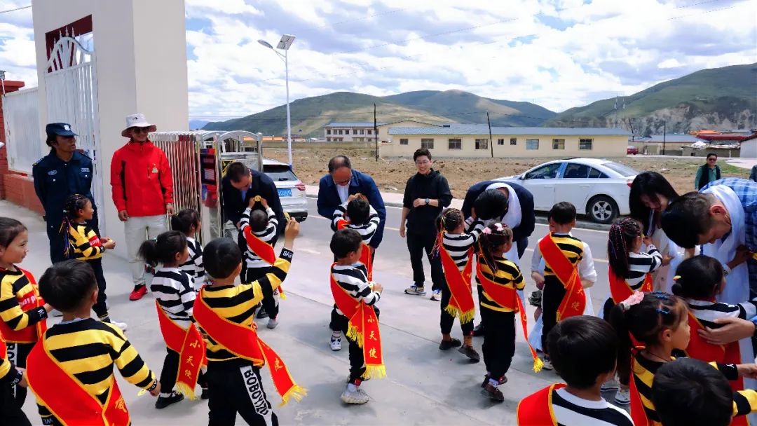 捐贈儀式結(jié)束后,一行人前往色達縣塔子鄉(xiāng)洞青村幼兒園實地走訪。