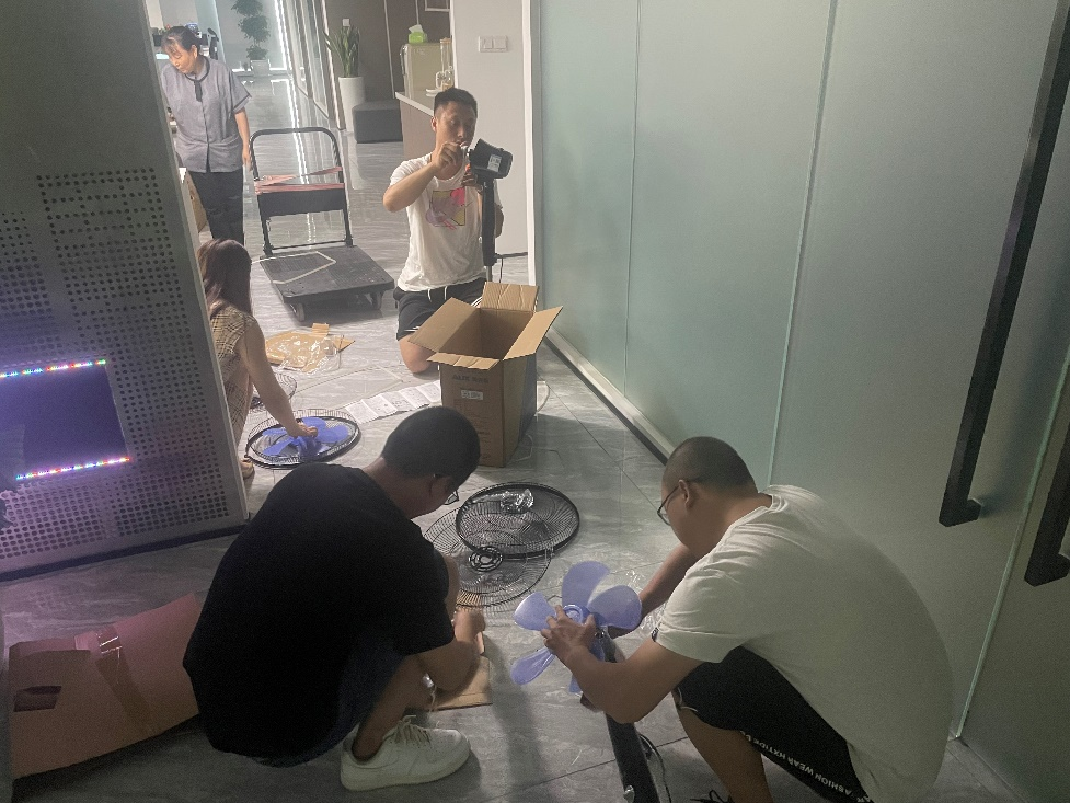 當空調不能使用時,大家齊心協力組裝風扇進行臨時降溫。