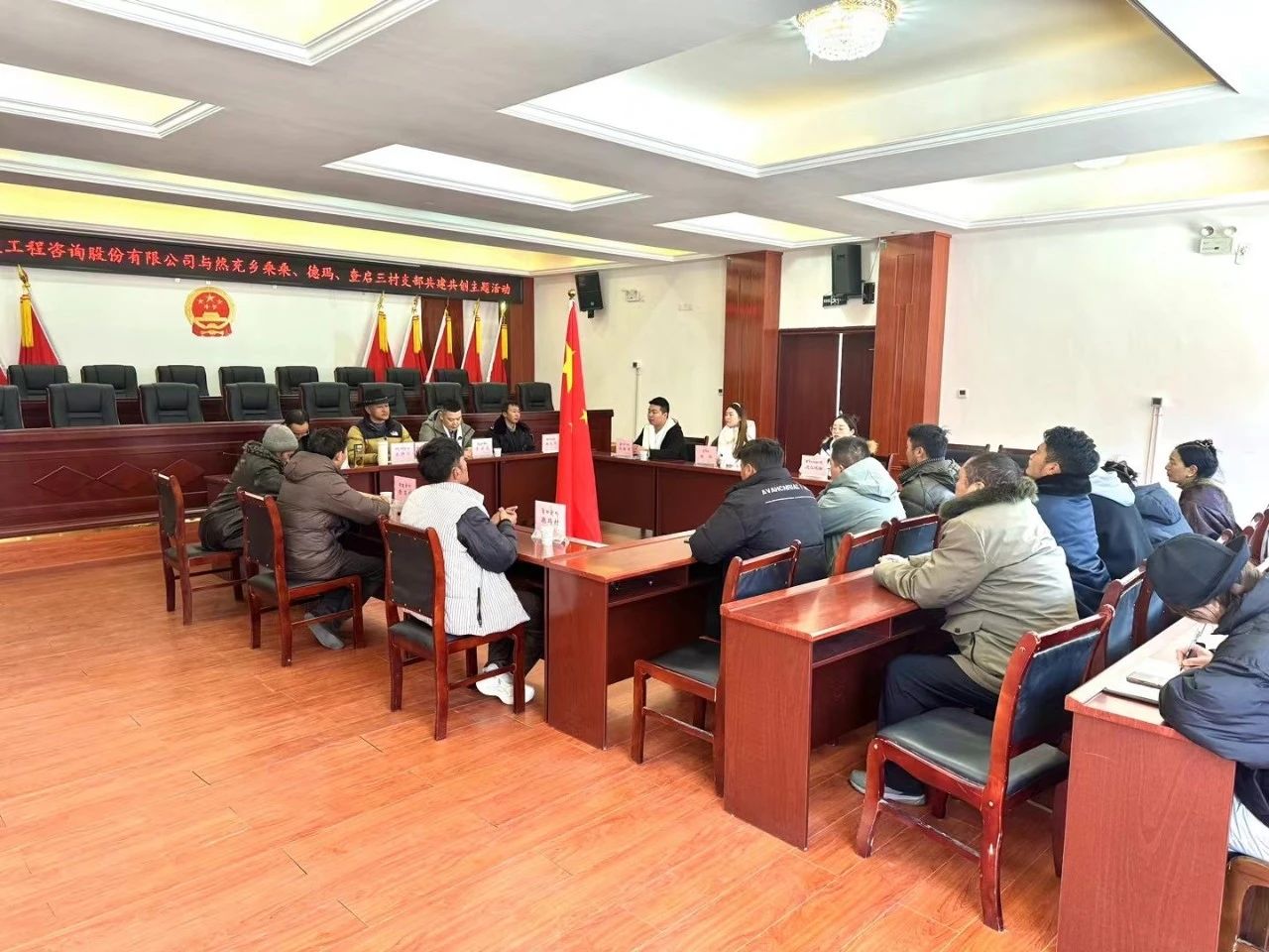 在色達縣水利局的牽頭下,2023年12月25日,四川弘誠天毅工程咨詢股份有限公司黨支部聯合色達縣然充鄉桑桑、德瑪、查啟三村黨支部開展“支部共建聚合力,黨建引領促發展”支部共建共創主題活動。縣水利局局長、黨組書記黃勇,縣水利局副局長湯大均,四川弘誠天毅工程咨詢股份有限公司負責人李澤民等出席活動。