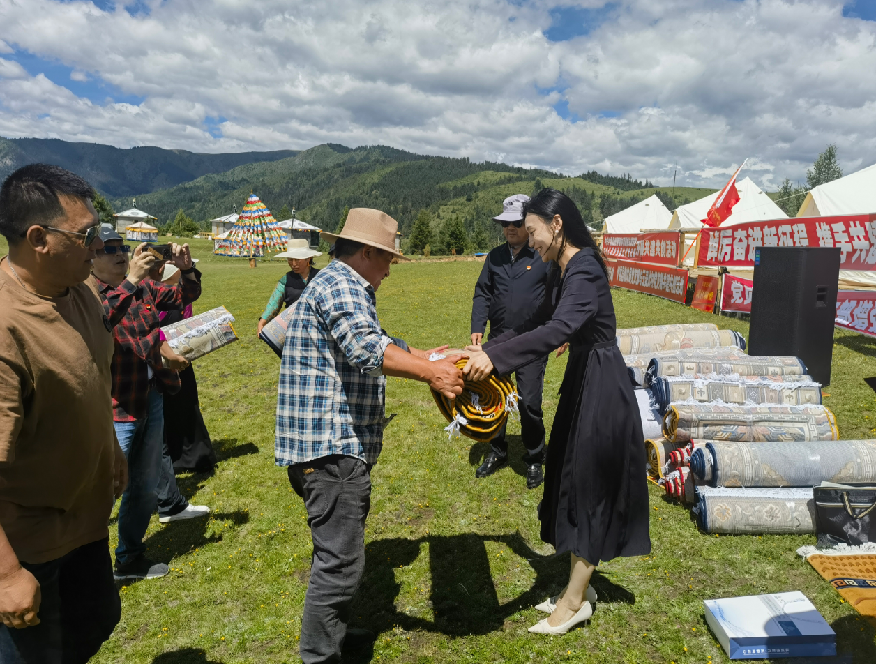 簽約儀式結束后,四川弘誠天毅工程咨詢股份有限公司黨支部為爐霍縣仁達鄉160名黨員送去藏毯、黨旗、黨徽等黨建慰問品。